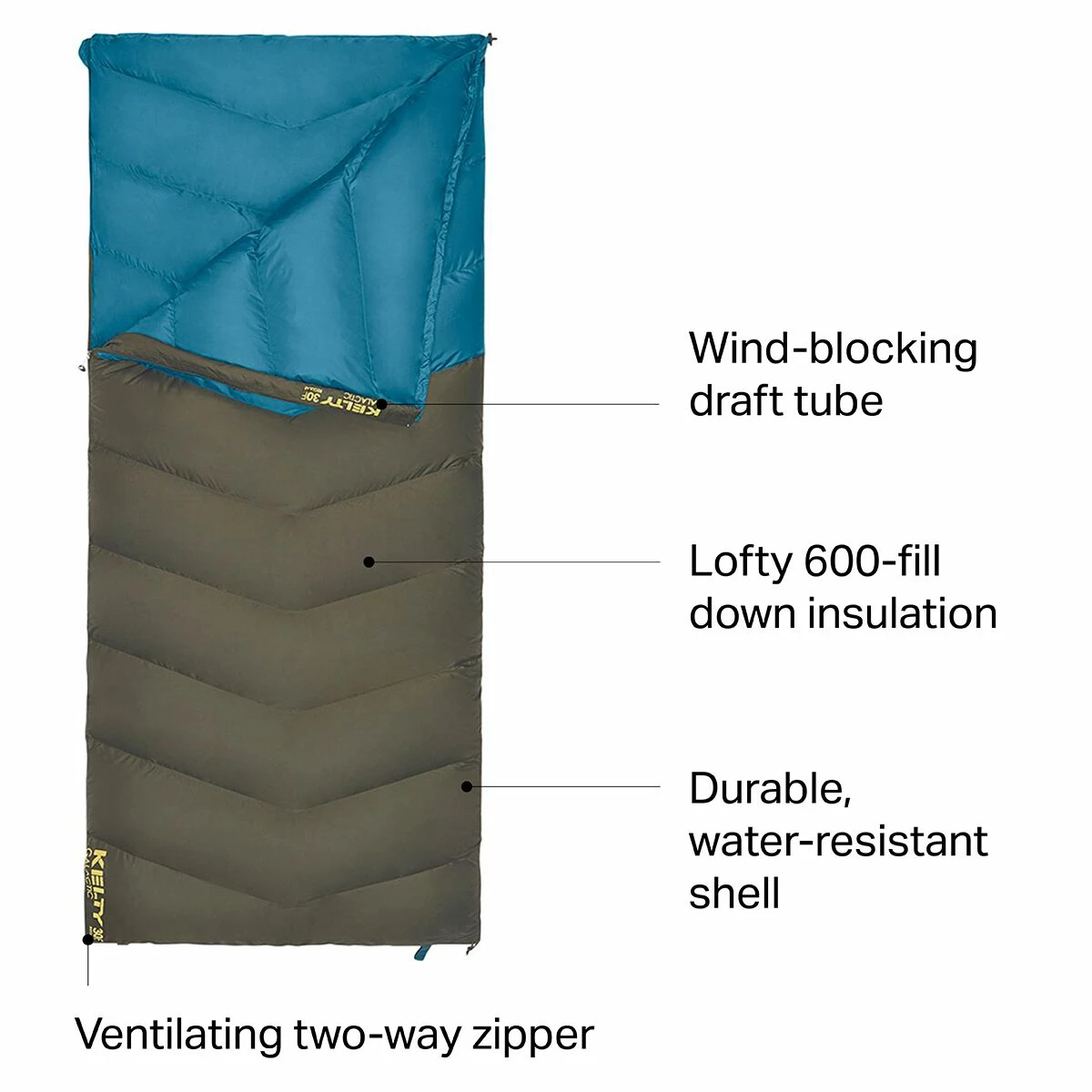- Draft tube with anti-snag zipper keeps warmth in