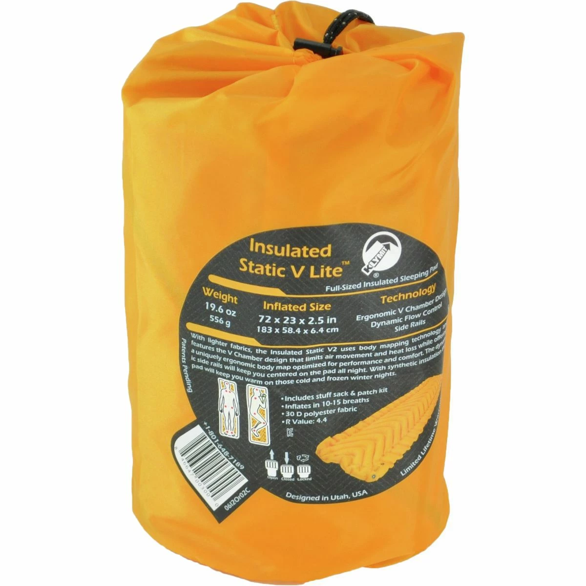 Klymit’s Insulated Static V Lite Sleeping Pad is light enough for backpacking, warm enough for winter camping, and convenient for any sleeping in any season. This four-season pad uses a touch of insulation to ensure winter-worthy warmth that won’t be too warm for spring, summer, and fall. Ultralight fabrics work with Klymit’s unique V Chamber body-mapped design to keep the pad as light and comfortable as possible. There are dynamic side rails for stability, a stuff sack, and an included patch kit.