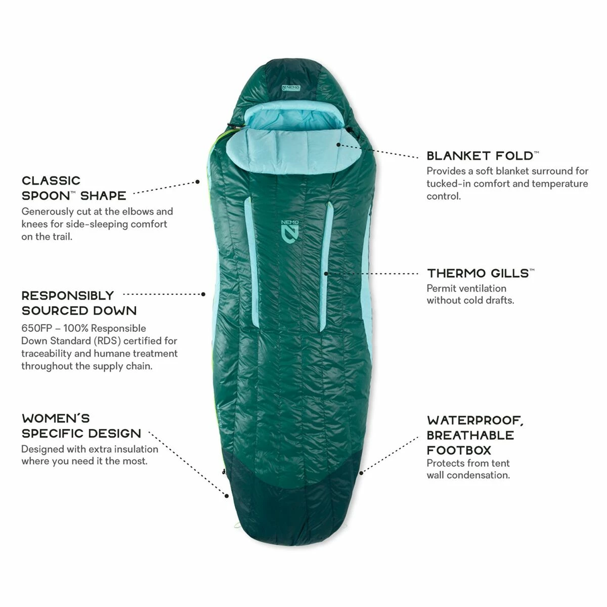 - Waterproof footbox keeps feet warm and dry despite tent condensation