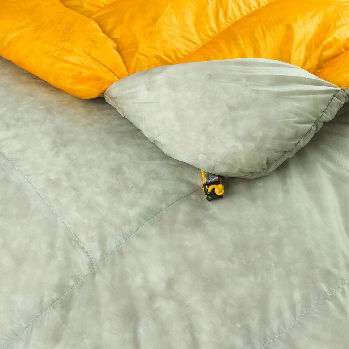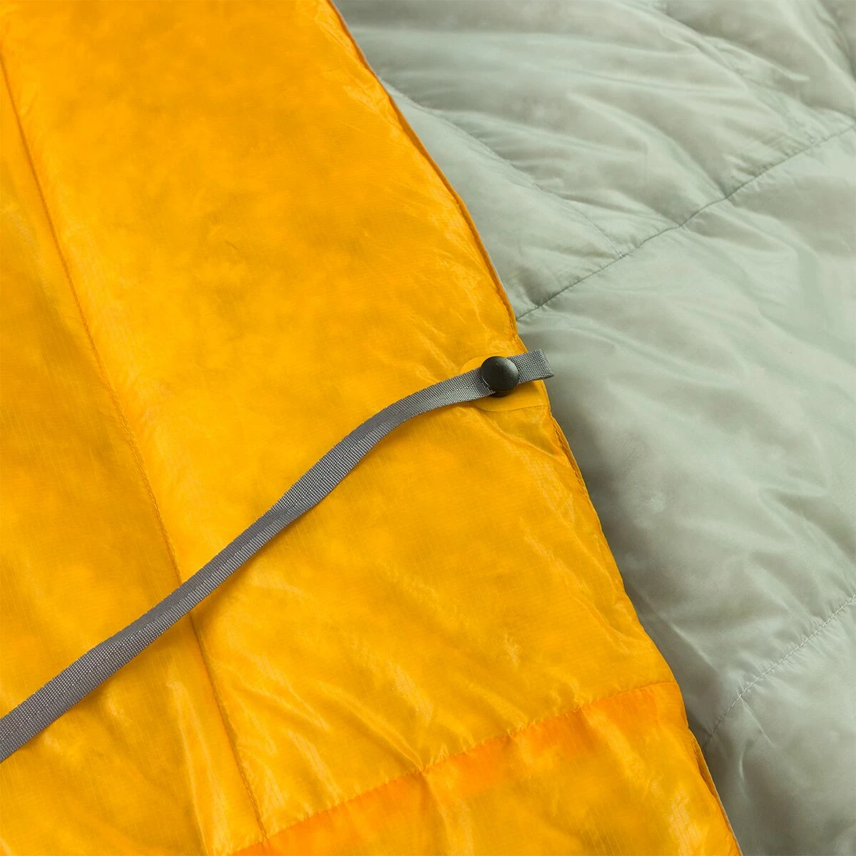 Sea to Summit treated the Ember’s down insulation to resist moisture, remain lofty, and retain its warmth in humid, moist conditions. The quilt’s bottom has a drawcord and press studs to create a snug footbox so your legs don’t slip out in the middle of the night. Four adjustable straps secure your sleeping pad so you don’t slip and slide off your pad.