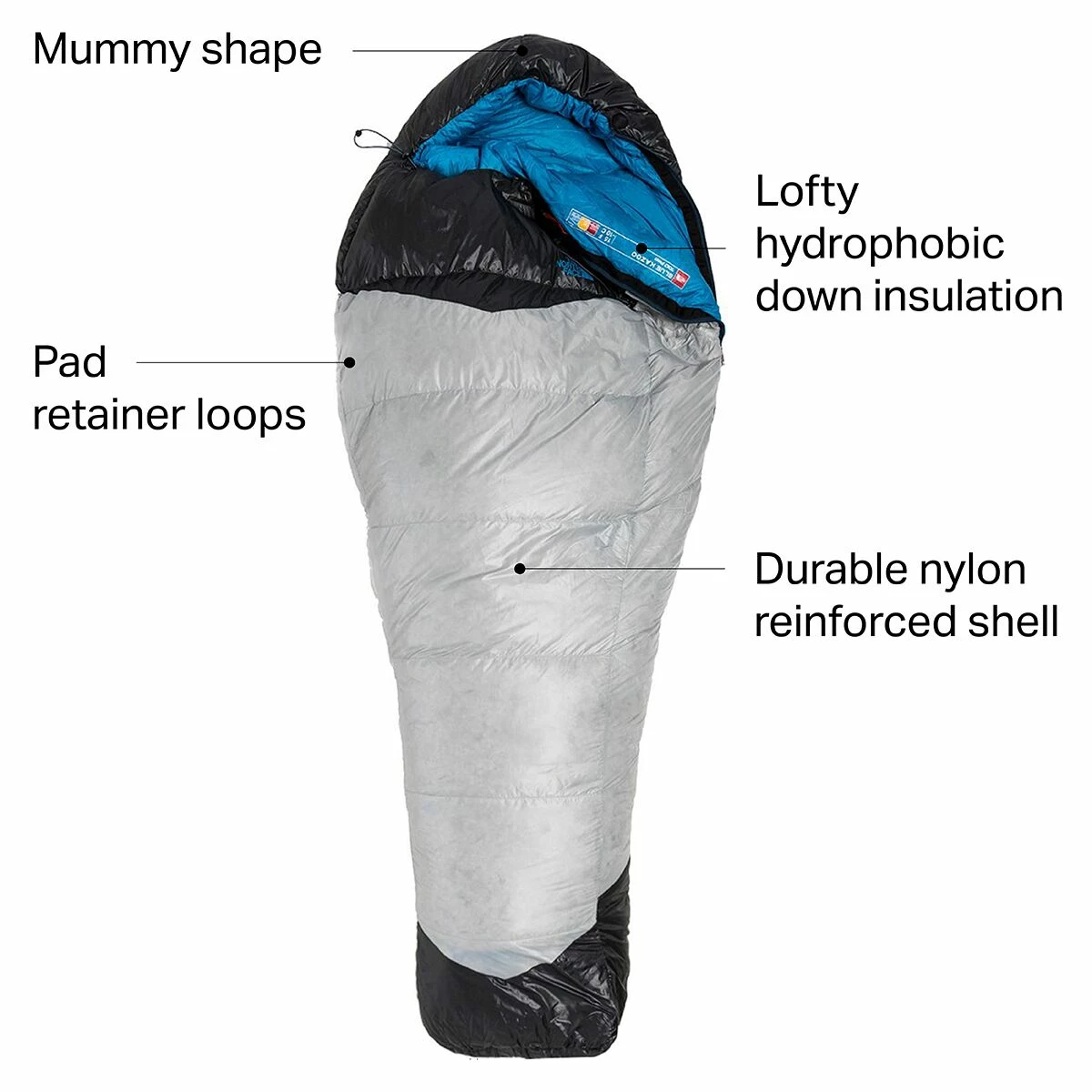 Now that you have locked eyes on The North Face’s Blue Kazoo Sleeping Bag, prepare yourself for a long-term relationship for three seasons out of the year. This year’s model is made with a higher fill count while being 10% more compressible, making this bag a solid choice for longer backpacking trips. Designed with a fitted hood and vaulted foot box for ergonomic comfort that promotes thermal efficiency and a draft collar that prevents heat loss, your bag-mate will keep you warm and snug.